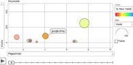 Motion Charts add sophisticated multi-dimensional analysis to most Google Analytics reports. Select metrics for the x-axis, y-axis, bubble size, and bubble color and view how these metrics interact over time. Choose the metrics you want to compare and expose data relationships that would be difficult to see in traditional reports.